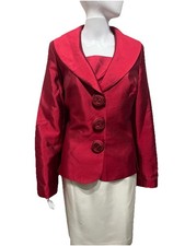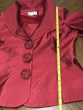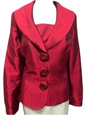Lily & Taylor Size 12 Red Silk & Wool Church Suit Blazer Only Rosettes Bust 42”
