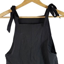 Lindanina Romper Shortall Black SZ 12 Pocket Adj Shoulder Ties Solid Cotton NWOT