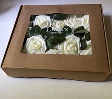Ling’s Moment Artificial Foam Flowers 25 pcs. Ivory Roses w/Stems & Leaves – New