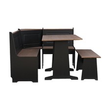Linon L-Shape Corner Dining 3-Piece Storage Breakfast Nook Set Black/Pecan