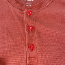 LL Bean Shirt Unshrinkable Mini Waffle Henley Men Large Reg Burnt Orange Outdoor