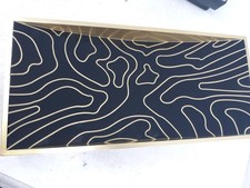 L’OBJET IL100 Decorative Tray Black Gold Topographic Map Pattern