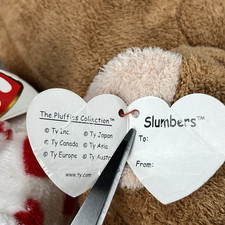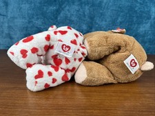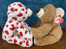 Lot 2 Ty Pluffies Bears: Slumbers Brown 2002 & Dreamsy Red Hearts 2007 9” -Tags