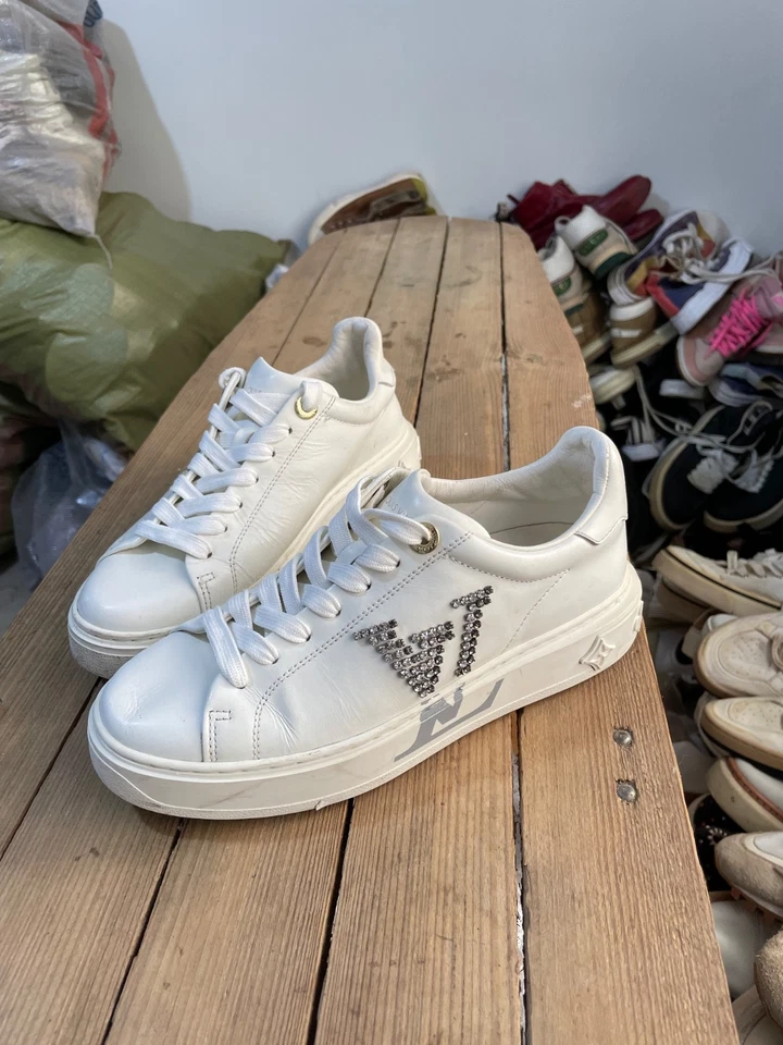“Louis Vuitton time out sneakers in white leather with crystal embellished LV initials size 36 EU.in …Â