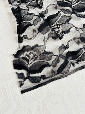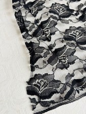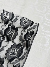 LOVELY!VTG BLACK SHEER FLORAL LACE MANTILLA WRAP SCARF FABRIC*52″X32″ 2RAW EDGES