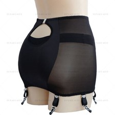 Luxallacki Back Hollow Sheer Garter Belt 6 Straps Suspender Metal Clips Girdle