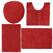 LuxUrux 4‑Piece Complete Red Bathroom Set – Microfiber Bath Rugs with Toilet Lid