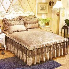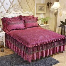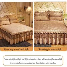 Luxury 3Pcs Bedding Set Bedspread Lace Bed Skirt Pillowcases Queen/King Size