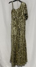 Mac Duggal Women’s Gold Sequin One Shoulder Evening Gown NWT Sz 14