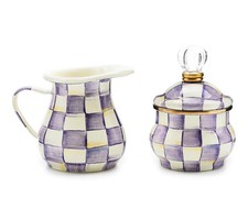 MacKenzie- Childs Violet Check Enamel Creamer 14-oz & Sugar 10-oz Set, Stock US