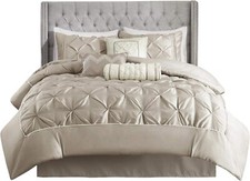 Madison Park 7pcs Bed In A Bag Comforter Set Tufted Pleated Faux Silk Bedding