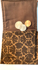Marblehead Handprints Vtg Sm 4″x4″Brn/tan Fabric Design 2 Pkt Tie Coin-Purse New