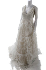 Marchesa Womens Sleeveless Ruffled Full Length Zip Wedding Dress White Size M