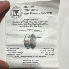 Martin Reel Company MG-72R Vintage Fly Fishing Reel with Box & Manual
