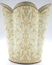 Be the first to review “MARYE-KELLEY Decoupage Antique Gold Damask Scalloped 12″H Wastepaper Basket”