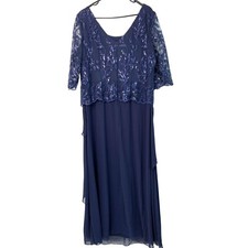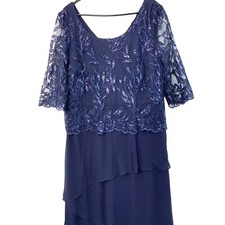 Maya Brooke Navy Lace Chiffon Tiered Bead Maxi Dress Size 16 Mother Bride 7379