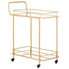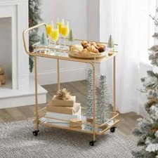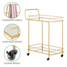 mDesign Vintage *2-Tier Beverage Rolling Cart*Serving Bar*Glass Shelves*Free S/H