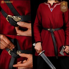 Medieval Black Leather Medieval Renaissance LARP Viking Belt with Brass Buckle