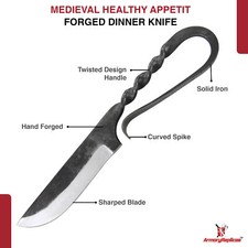 Medieval Hand Forged Twisted Full Tang Dinner Banquet Knife w/ Leather Sheath