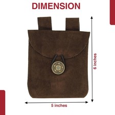 Medieval Renaissance Leather Brown Suede Coin Belt Pouch with Brass Accents