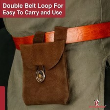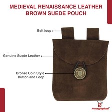 Be the first to review “Medieval Renaissance Leather Brown Suede Coin Belt Pouch with Brass Accents”