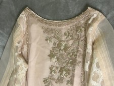 MEDIUM Threads & Motifs Peach Sheer Sequin 2 Piece Set Embroidered Elegant Lace