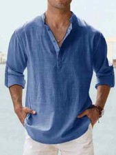 Men Casual Shirt Long Sleeve Cotton Linen Beach T Shirt Lightweight NEW 8 COLORS