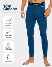 Men’s 100% Merino Wool Base Layer Pants Winter Warm Underwear Long Johns Bottom