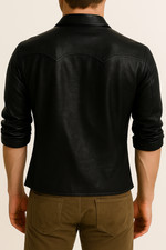 Men’s BLACK Lambskin Leather Shirt – Vintage Biker Slim Fit Cowboy Jacket