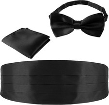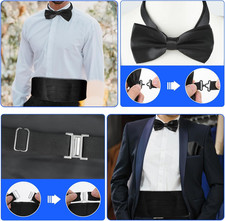 Men’S Cummerbund Bow Tie Set Adjustable Solid Color Tuxedo Cummerbund and Bow Ti