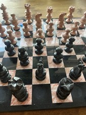 Mexican Onyx Marble Chess Set Pink & Black Hand Carved Stone Complete Chess Set