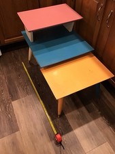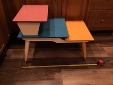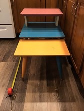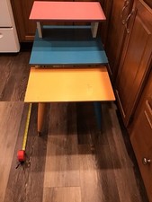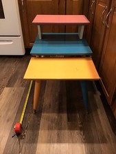 Mid Century Modern MCM End Table Step Table 3 Tier Oak Wood Tapered Legs PAINTED