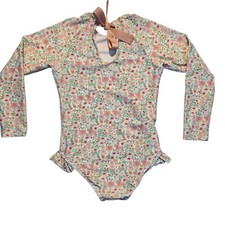 Minnow Floral Long Sleeve One-Piece Swimsuit Rashguard – Girls 5/6 Made in USA