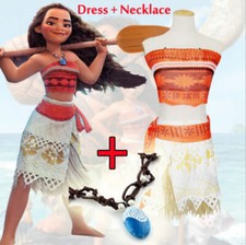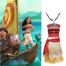 Moana Costume Princess Dress Skirt w/Necklace for Kids Girl Halloween Cosplay
