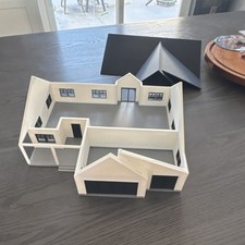 Modern House Model Kit, Pre-built, Removable Roof, White/Black Plastic