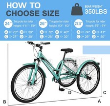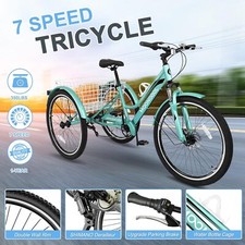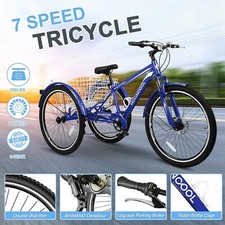 MOONCOOL Adults Mountain Tricycles, 24″/26″/27.5″ 7-Speed Trikes Cruiser Trike