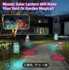 Mosaic Solar Hanging Lantern Outdoor Multicolor Glass Jar Automatic ON/OFF