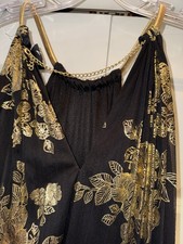 MSK Women’s Sleeveless Black And Gold Long Dress Beautiful Neckline