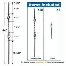 Muzata 10p 44” Wrought Iron Balusters Black Double Basket Twist Hollow WT05