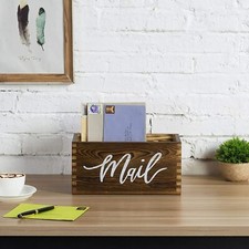 MyGift Rustic Dark Brown Wood Tabletop Decorative Mail Holder Box