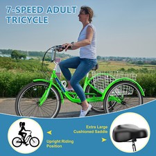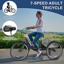 NAIZEA Adult Trike Tricycle Bike 24/26″ 7 Speed 3 Wheel Cruiser Bicycle w/Basket