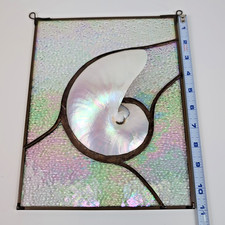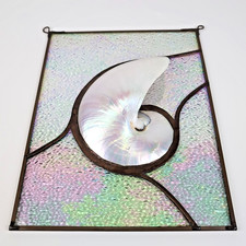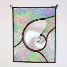 Nautilus Shell Seashell Stained Glass Iridescent Suncatcher Copper Nautical 11×8
