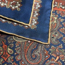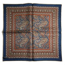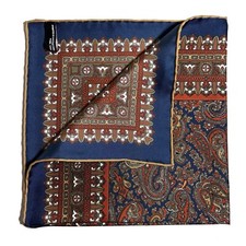 Navy Blue & Orange Paisley Silk Pocket Square (Hand-Rolled in England)