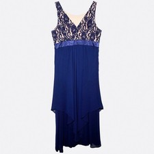 Navy Lace & Chiffon Cascading Goddess Gown Formal Wedding Guest Plus Size 1X XL