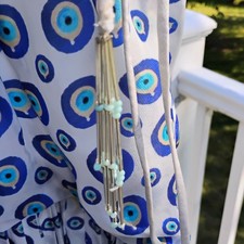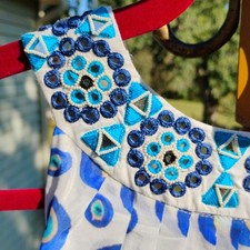Be the first to review “NAZILA COUTURE siz L Blue Evil Eye Maxi Dress Mirror Bead Embroidery Boho India” Cancel reply