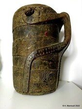 Nepal Milk Jug 19th C Nepalese Mustang Carved Wood Engraved