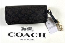 NEW COACH Sunglass Hard Case SIGNATURE C Walnut Black Coated Canvas with Strap