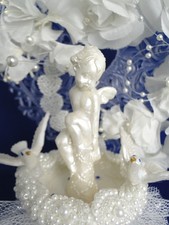 New Elegant Cherub & Lovebirds Ornate Crystal Look Heart Wedding Cake top #383