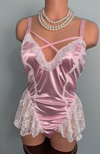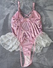 NEW Glossy 2nd Skin Satin Teddy Bodysuit 3X Frilly Lacy Girly Open Bum