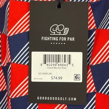 NEW Good Good Golf Polo “Check Me Out” Mens 2XL Red Navy Geometric USA $74.99